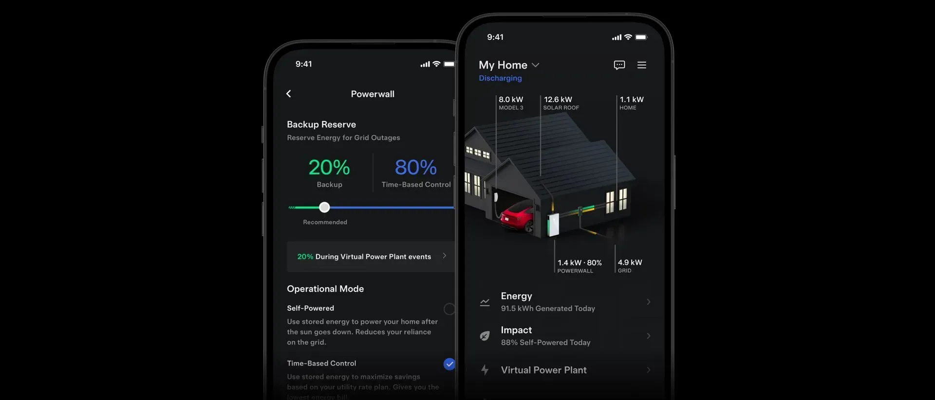 When your solar system generates more energy than you need, you can store the extra energy with Powerwall and save it for later. Powerwall can also recharge from the grid when utility prices are low.